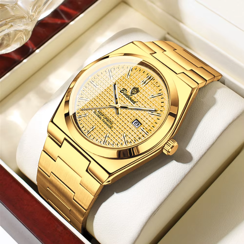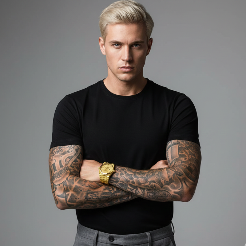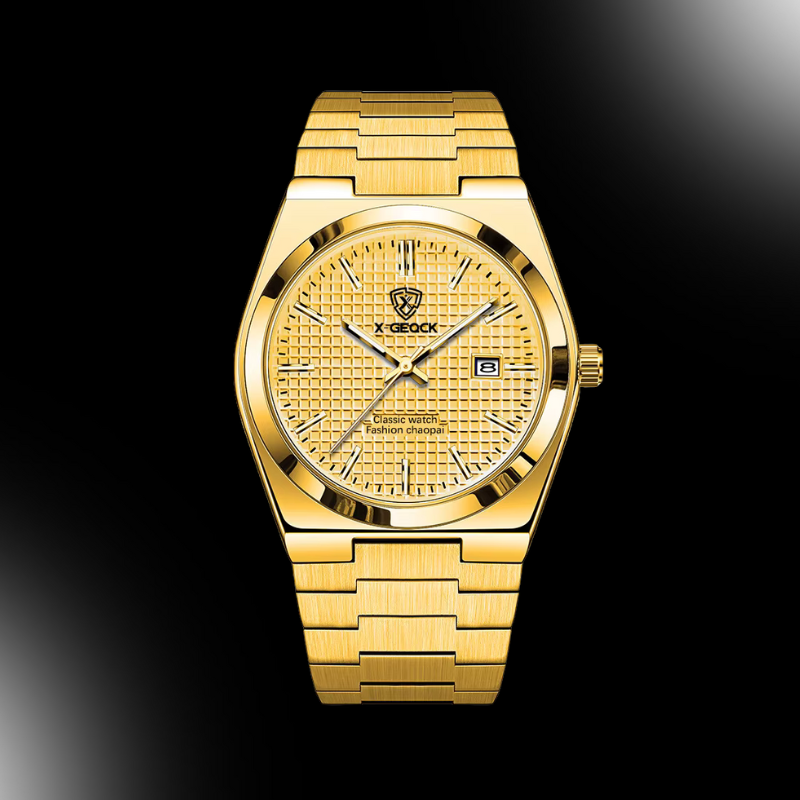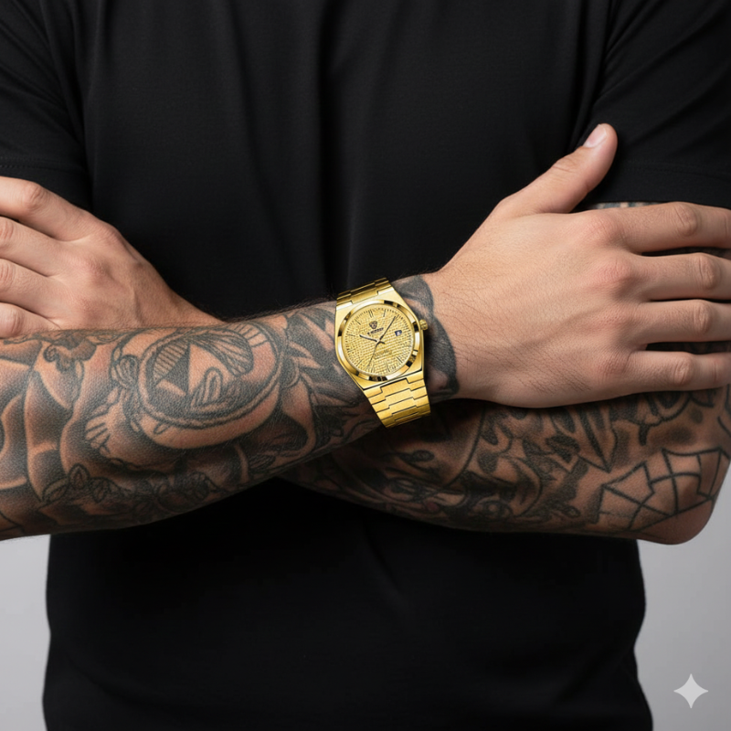 O VLANC Royal Gold é a definição de elegância com presença. Criado para homens que sabem exatamente o que querem transmitir, este relógio une acabamento dourado intenso, design refinado e personalidade marcante. Ele não passa despercebido — ele se impõe com classe.